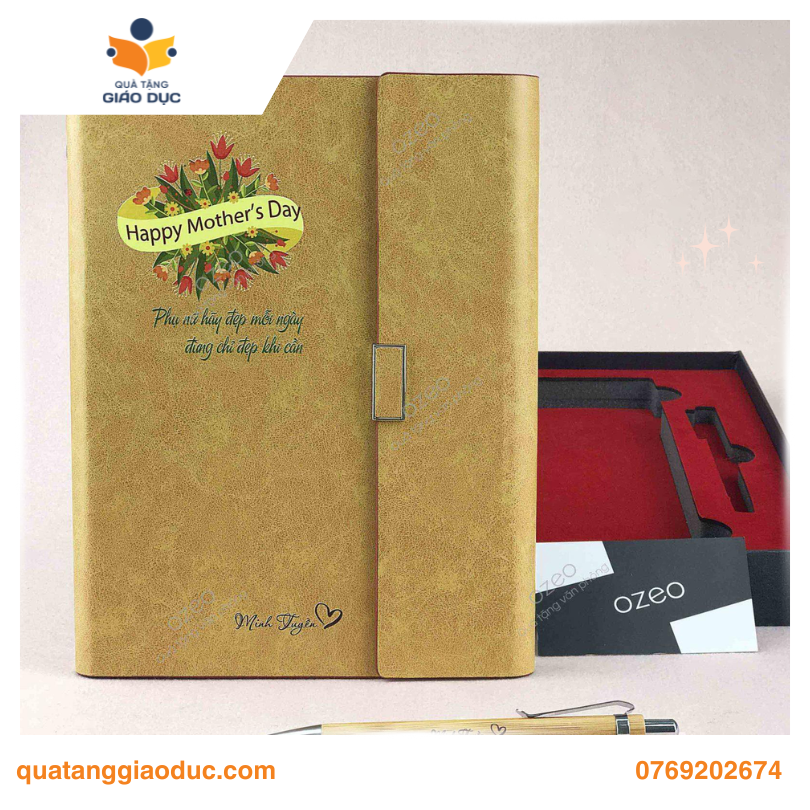 Một bộ sổ tay và bút ký cao cấp là lựa chọn quà tặng 8/3 cho cô giáo mầm non vừa đẹp, vừa mang tính ứng dụng lâu dài. Sổ bìa da, giấy chất lượng cao, kết hợp với bút ký và logo trường hoặc lớp in tinh tế giúp món quà trở nên chuyên nghiệp. Bộ quà này không chỉ thể hiện sự tôn trọng mà còn là công cụ hỗ trợ cô giáo trong việc ghi chép, tổ chức kế hoạch giảng dạy và quản lý lớp học hiệu quả. Đây là món quà vừa mang tính trang trọng, vừa thiết thực, phù hợp cho mọi môi trường giáo dục.